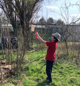 In the school garden we made decorations for the Christmas tree by sawing logs and decorating them in class. We then all sang We Wish You A Merry Christmas together as we decorated the tree. We also helped our garden teacher tidy up the garden ready for winter by covering the plants and protecting them from the frost, pulling out all the brown leaves from the growing beds and collecting up all of the fallen leaves to make a giant leaf pile!
